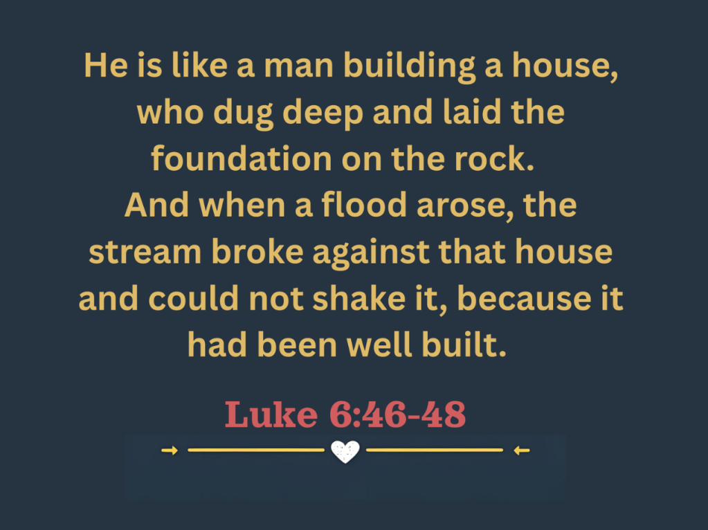Our Anastasia Kids will work together on memorizing Luke 6:48 during Sunday mornings through February 15th. To make it fun and easy, we’ll learn the verse in rhythm with motions – because moving helps it stick!